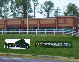 Convierta las áreas verdes "claras" en llamativos espacios publicitarios. Muestre a sus clientes el valor agregado en paneles publicitarios intercambiables personalizados para paisajismo. PrecisionJet es el líder reconocido en la producción de gráficos de césped sintético para la industria del campo de deportes. Ahora, esa misma experiencia está disponible para el césped del paisaje. Paisajismo corporativo es un valioso espacio, para ganar la confianza de sus clientes, mostrándoles cómo utilizar este espacio para la publicidad. Sabemos que nuestros gráficos inspiran espíritu de equipo y comunidad, pero también puede hacer que usted y sus clientes, ganen dinero.